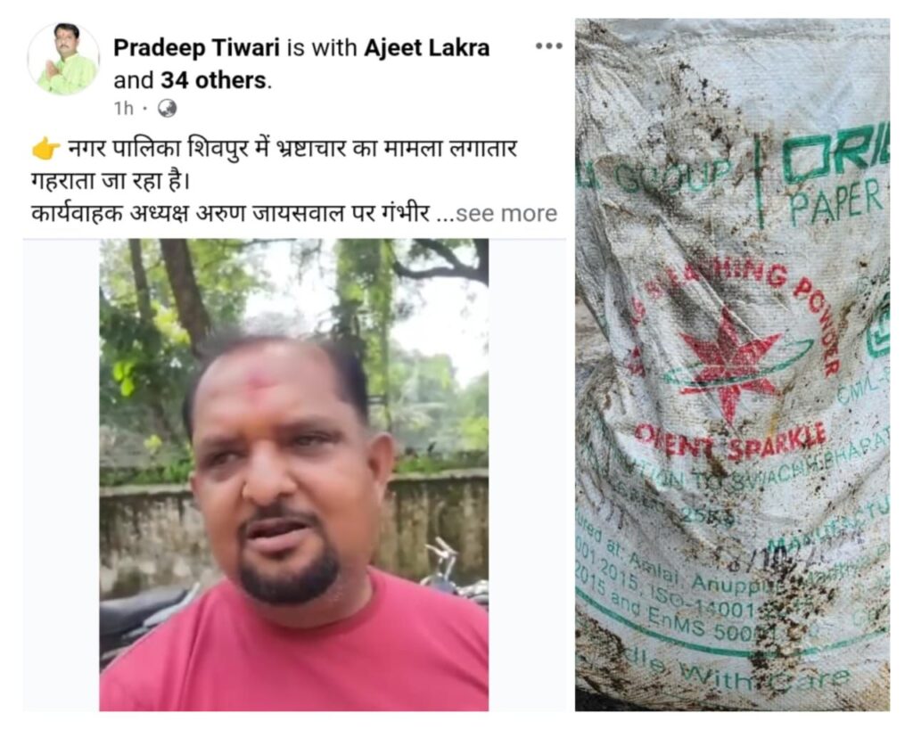 नगर पालिका शिवपुर में भ्रष्टाचार का मुद्दा अब तूफ़ान बन चुका है। चौंकाने वाली बात यह है कि इस बार यह आरोप किसी विपक्षी नेता ने नहीं बल्कि भाजपा के ही एक पार्षद प्रदीप तिवारी ने अपने कार्यवाहक अध्यक्ष अरुण जायसवाल पर लगाए हैं।